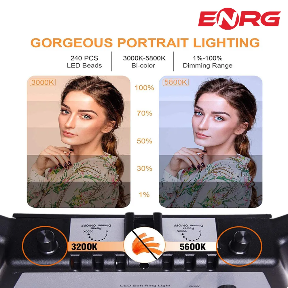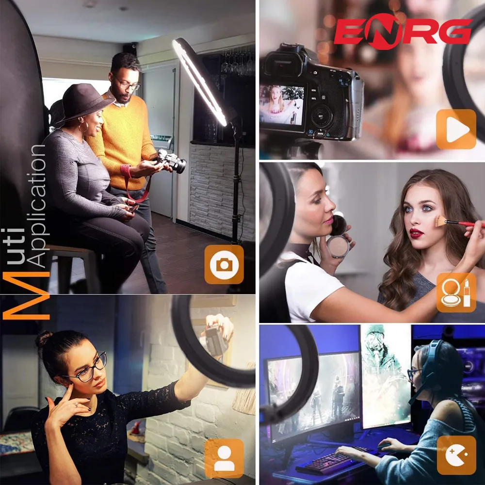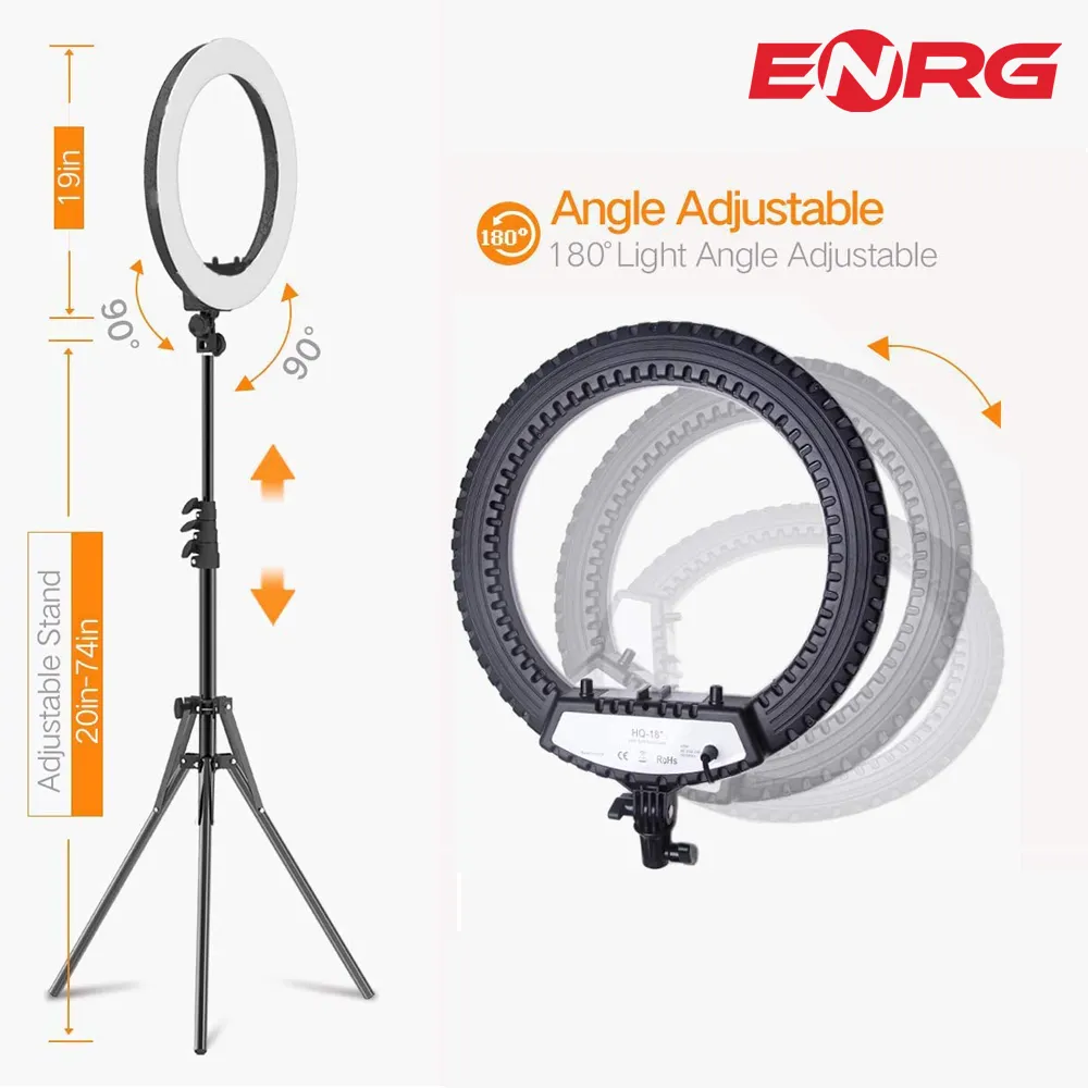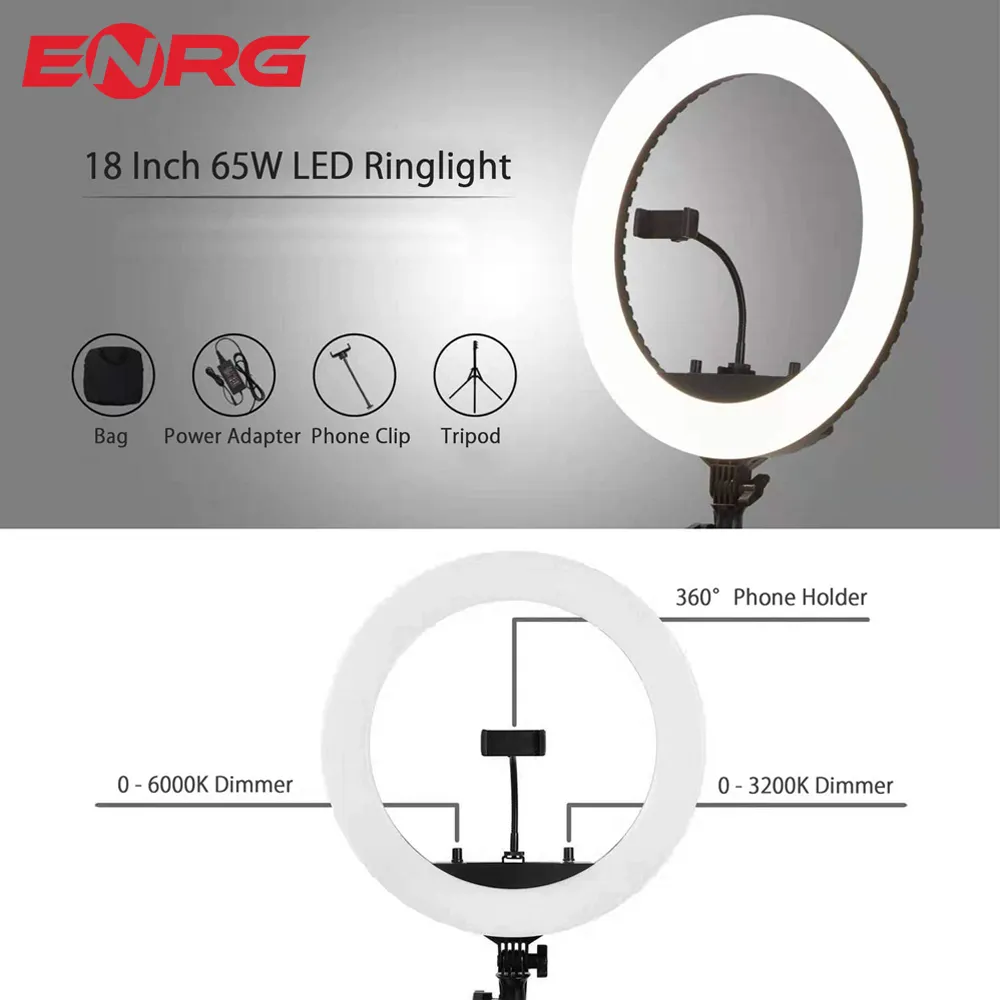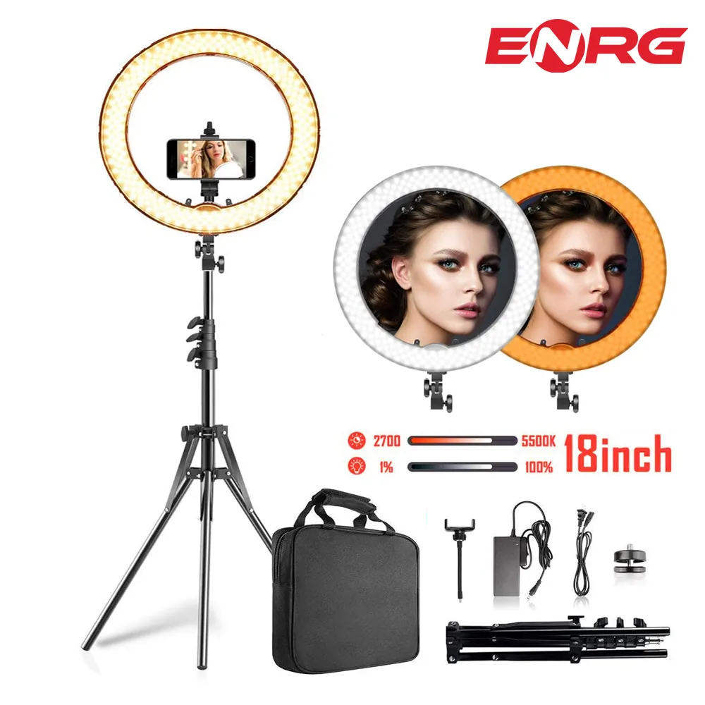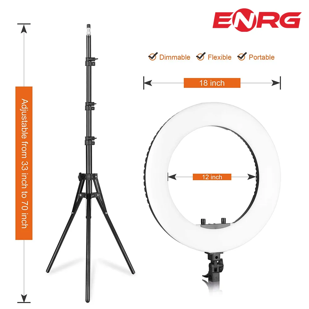 - ENRG LED Ring Light 18 Inch \ 45 cm with 7.5ft Metal Tripod Stand Carry Bag And Adjustable Phone Holder